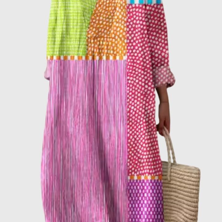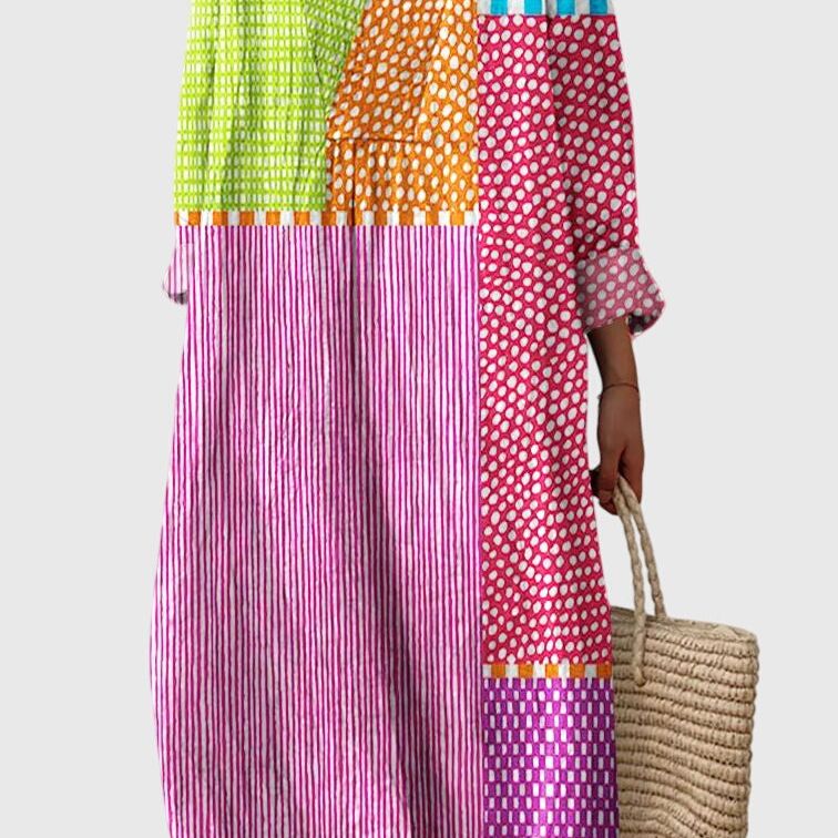 שמלת מידי אלגנטית עם שרוולים ארוכים והדפסה של שירה