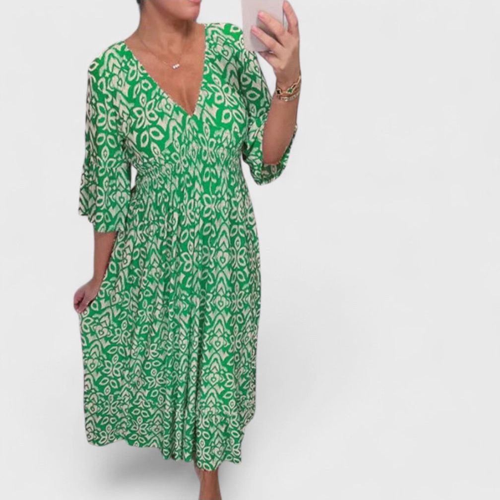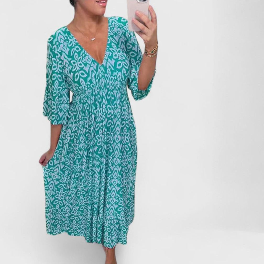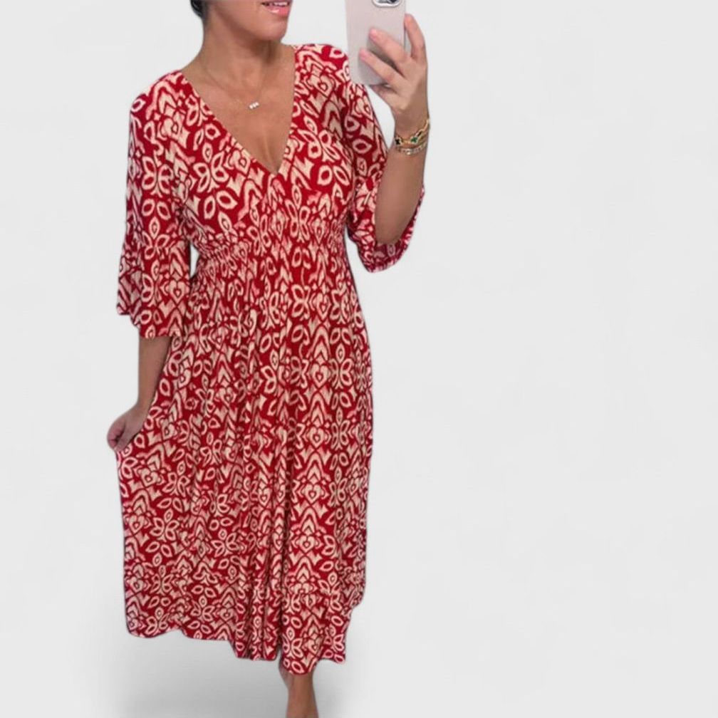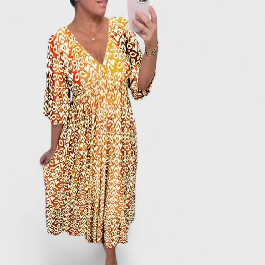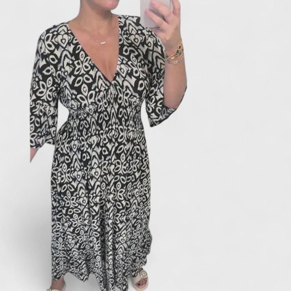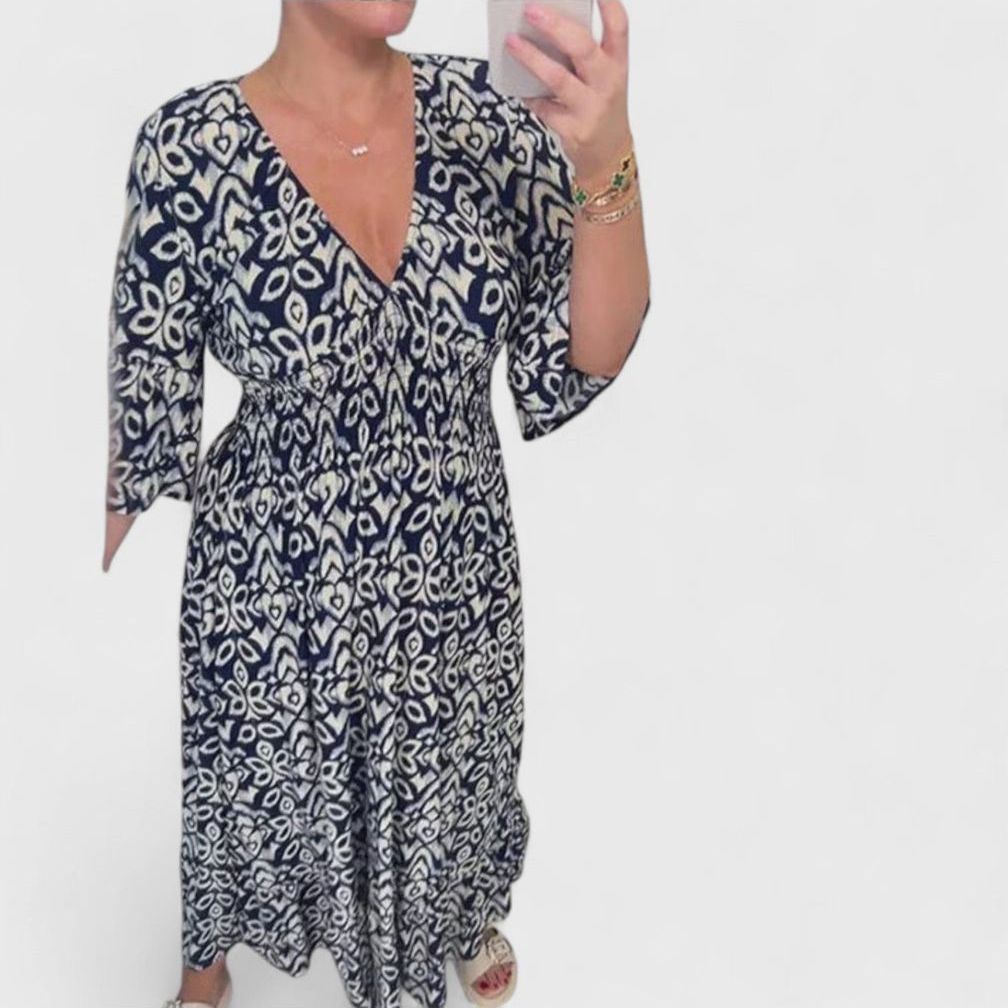 שמלת נויה עם צווארון וי מודפס