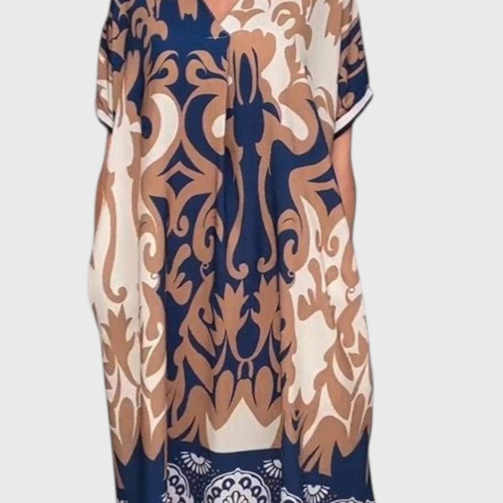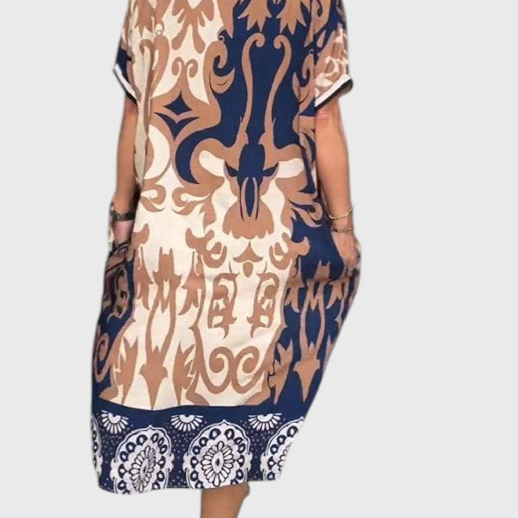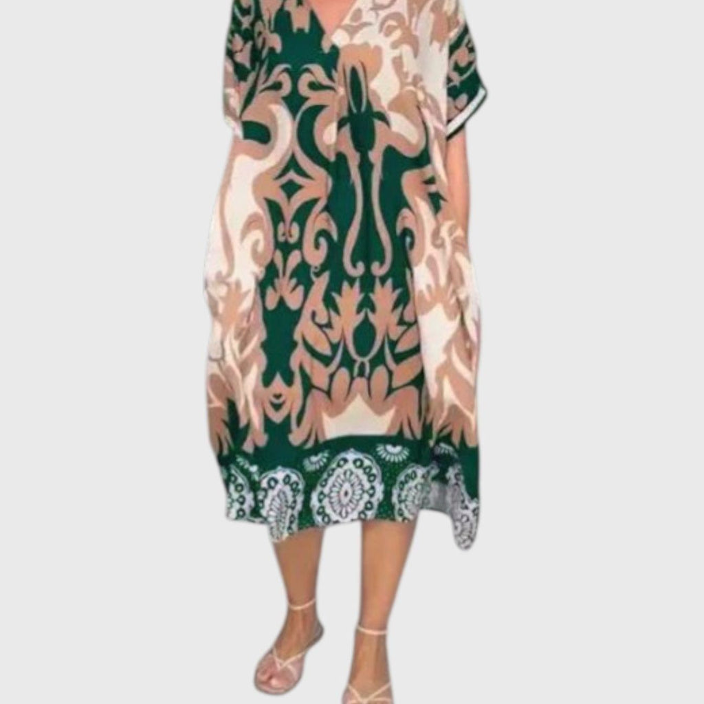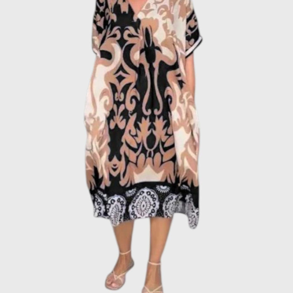 שמלת מידי עם צווארון וי והדפסה רחבה של טליה
