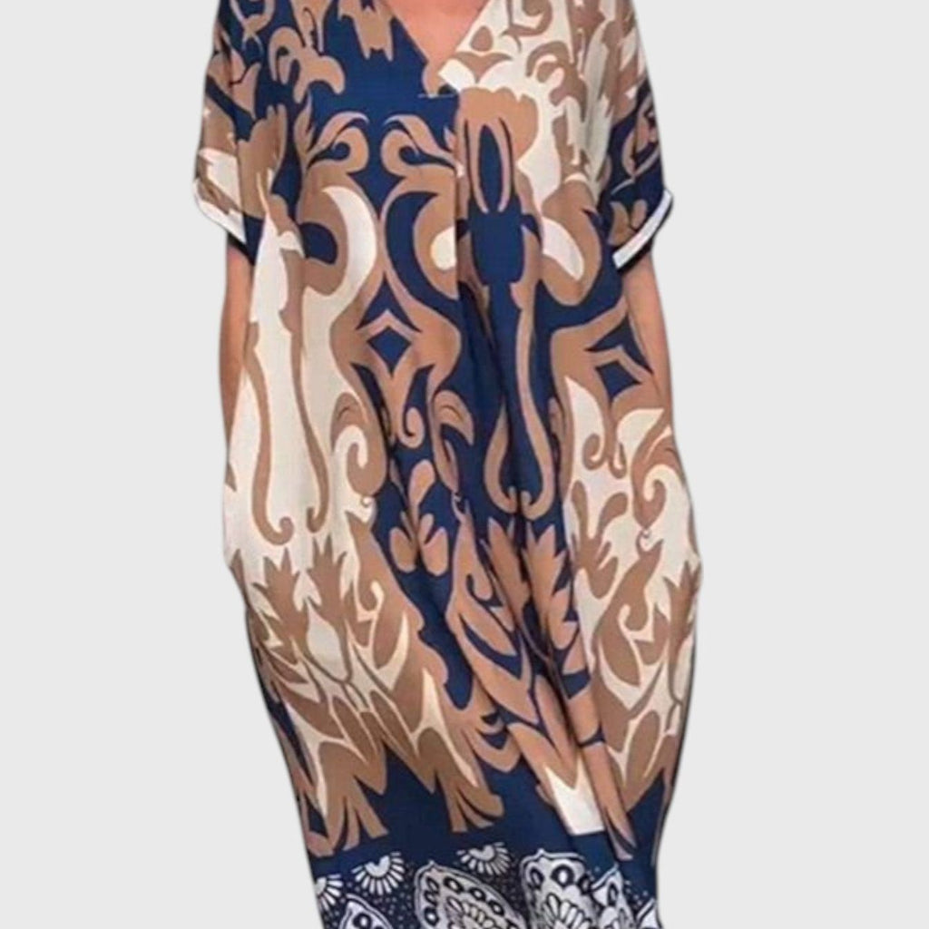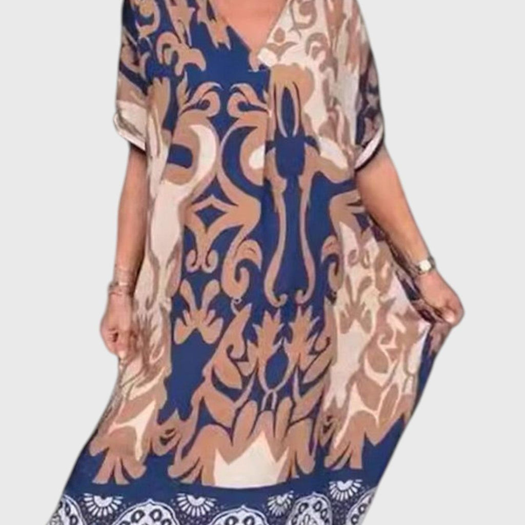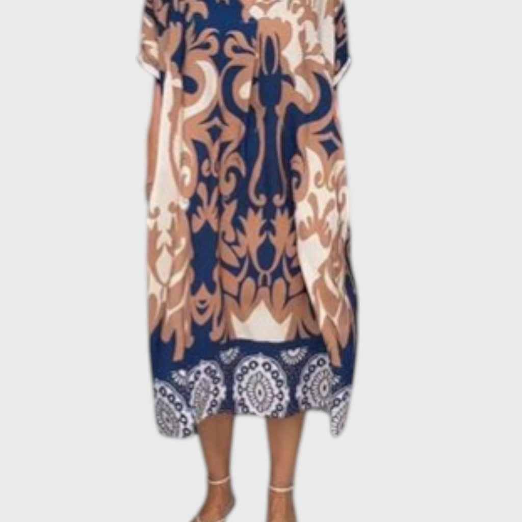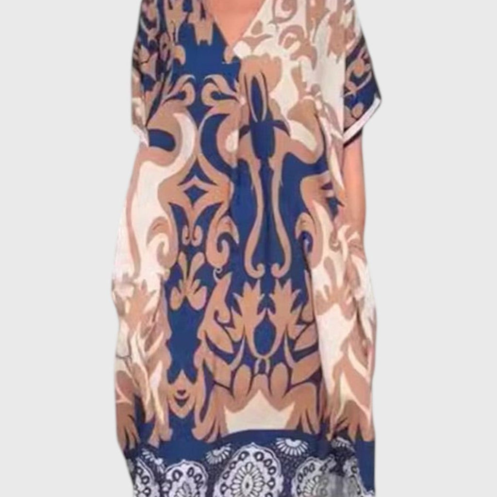 שמלת מידי עם צווארון וי והדפסה רחבה של טליה