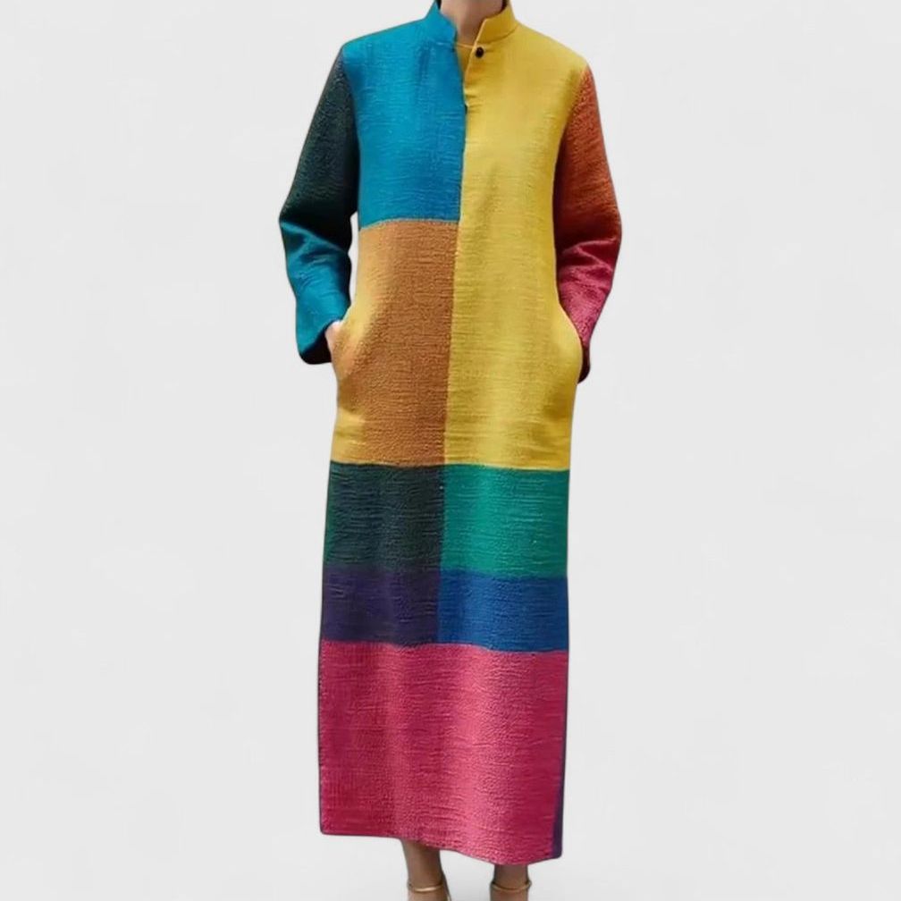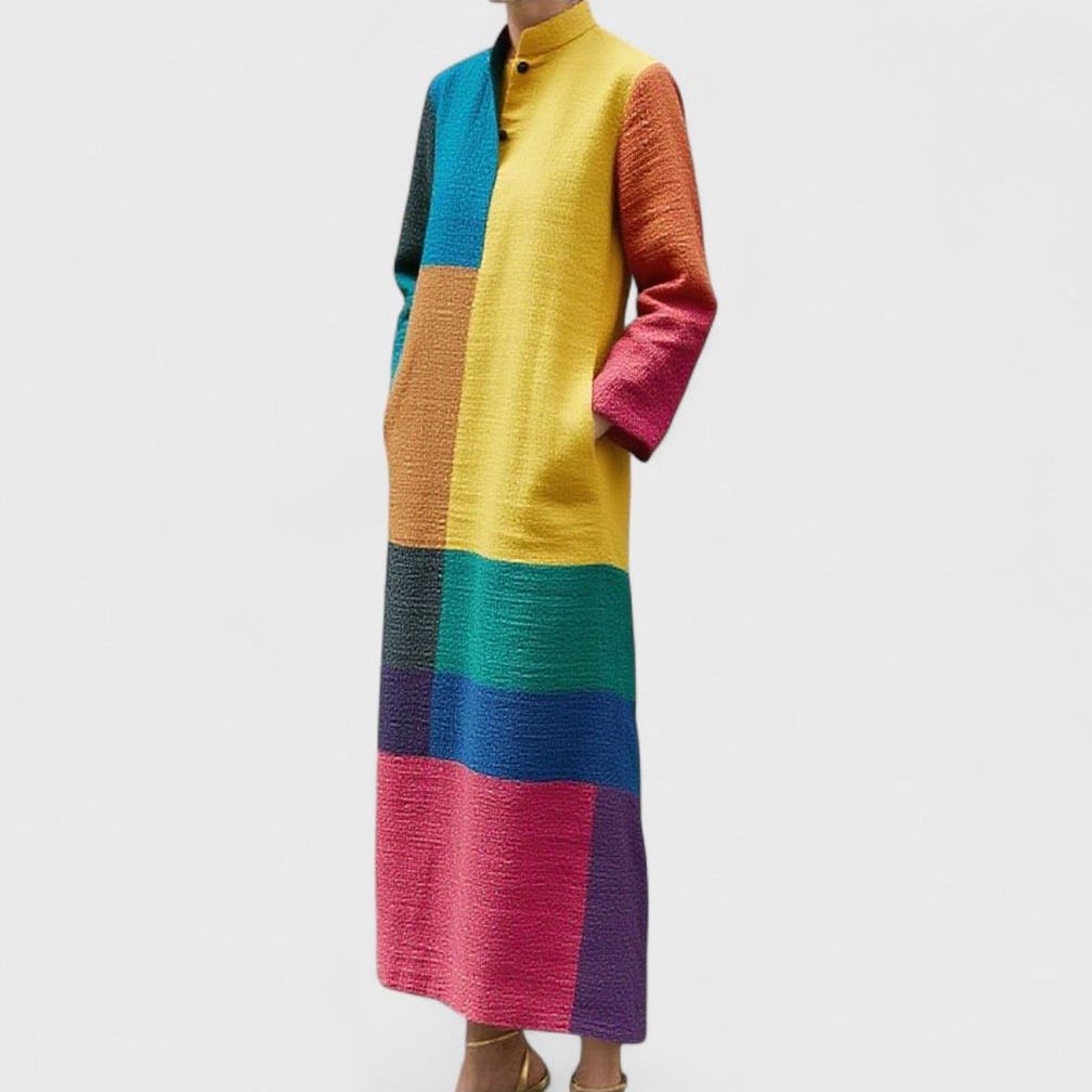 שמלת מקסי עם שוליים צבעוניים של זיו